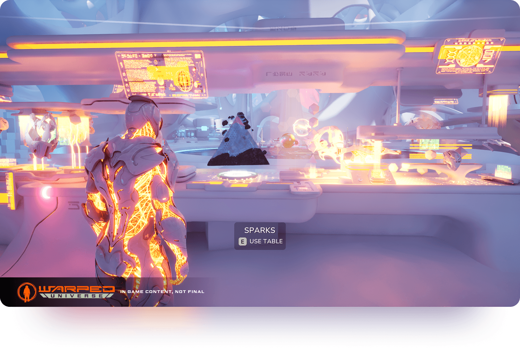 Then we have our upgrade system, Potential and Sparks. We wanted to have a player driven equipment enhancement system, and thought it would be fun for it to revolve around the dice rolling mechanic you’d find in many Table Top RPG games. The items created by using Artifractal Cores also come with an extra stat called Potential. The Potential of an item is filled up by using Sparks that players can receive as end of mission rewards. Sparks come in six rarities from Common to Warped, D4 to D20 respectively. These are rolled at workbench to consume that amount of Potential and receive a set upgrade depending on whether the Spark was applied to a Weapon or piece of Armor.